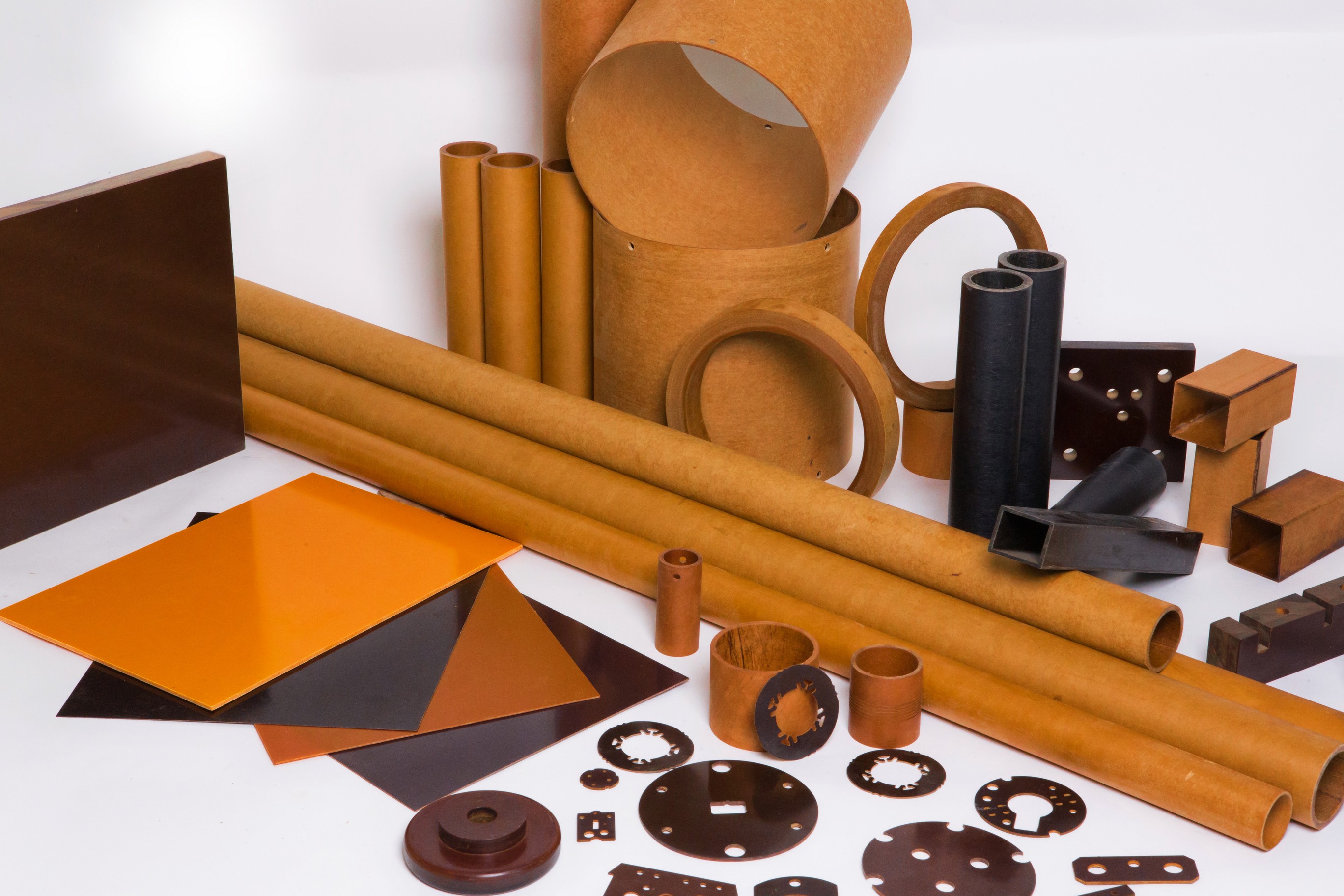 Composto obtido da combinação de papéis neutros da mais alta qualidade, sendo impregnados com resinas fenólicas, laminados a altas pressões e temperaturas. Resultando em um laminado homogêneo, baixo peso específico, baixo custo, garantindo a máxima confiabilidade e oferecendo excelentes propriedades elétricas e mecânicas conforme aquelas exigidas pelas normas internacionais. Podem ser fornecidos em chapas, tarugos, tubos, peças usinadas e moldadas . Suas características técnicas variam conforme os tipos de papéis e resinas utilizados: